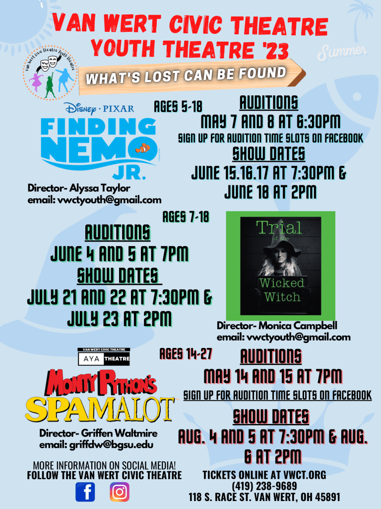 Check out the opportunities for summer youth and young adult theatre. (Note: the audition dates for The Trial of the Wicked Witch are now one week earlier that publicized previously- June 4 and 5 are the correct dates).
